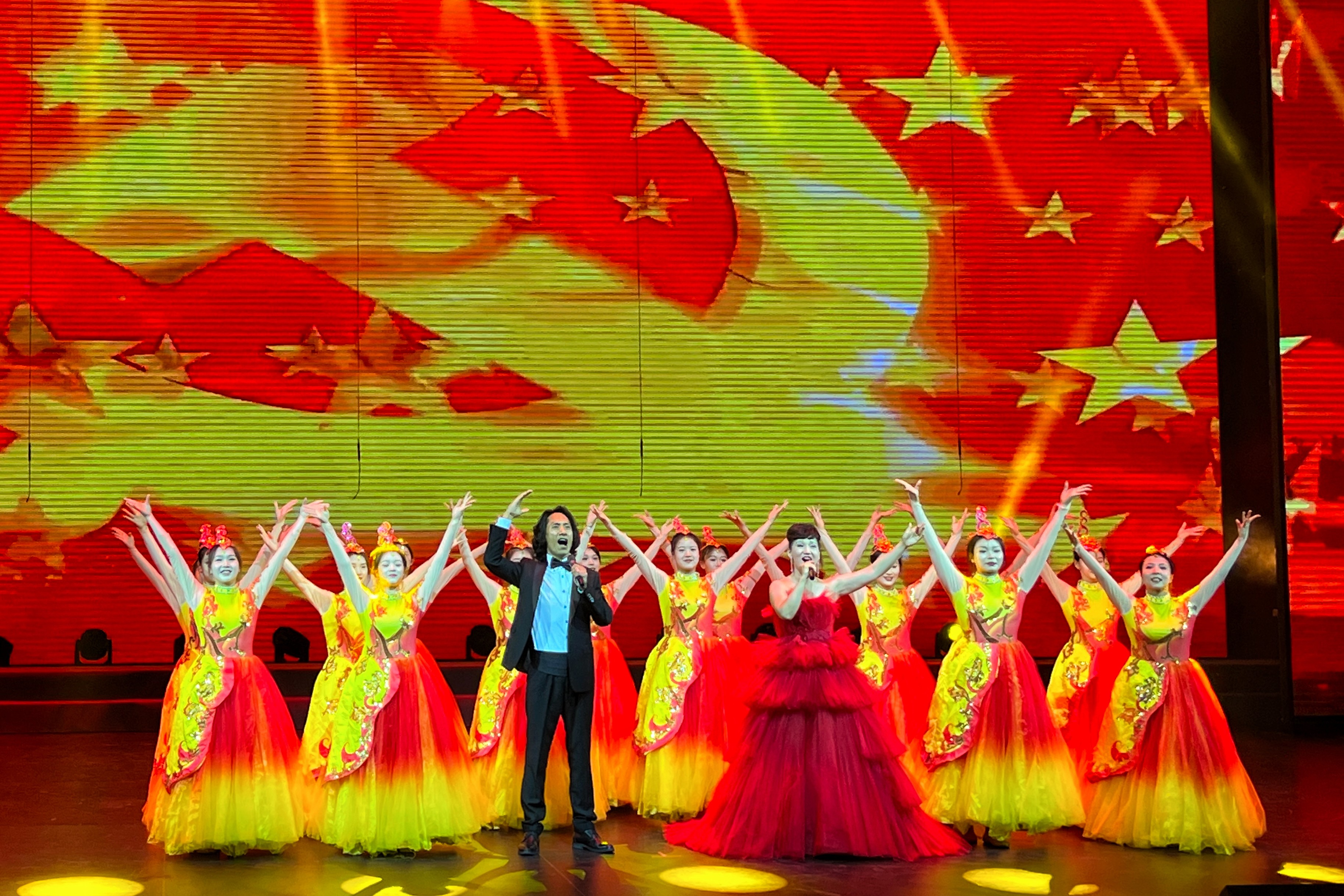演唱會(huì)在大合唱《唱支山歌給黨聽》中拉開序幕。情景歌舞《黨旗里閃動(dòng)的青春》折射出不同的時(shí)代歷程,呼喚起觀眾的深刻回憶。男女合唱《領(lǐng)航》展現(xiàn)了濃郁的家國情懷,氣勢(shì)磅礴地抒發(fā)了全國各族人民在中國共產(chǎn)黨的帶領(lǐng)下闊步新時(shí)代新征程的豪邁之情……一首首經(jīng)典曲目帶領(lǐng)全場(chǎng)觀眾追尋紅色記憶、感悟紅色精神、汲取紅色力量、奏響實(shí)現(xiàn)中華民族偉大復(fù)興的天地交響。