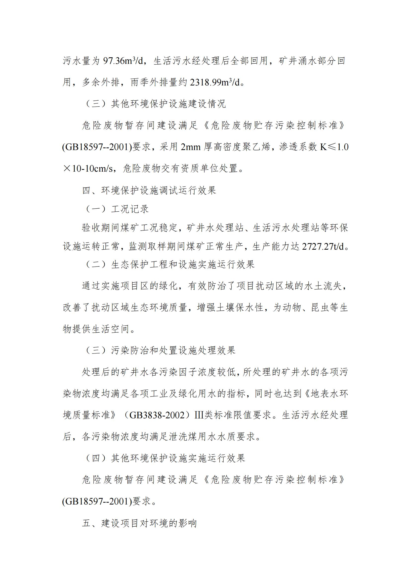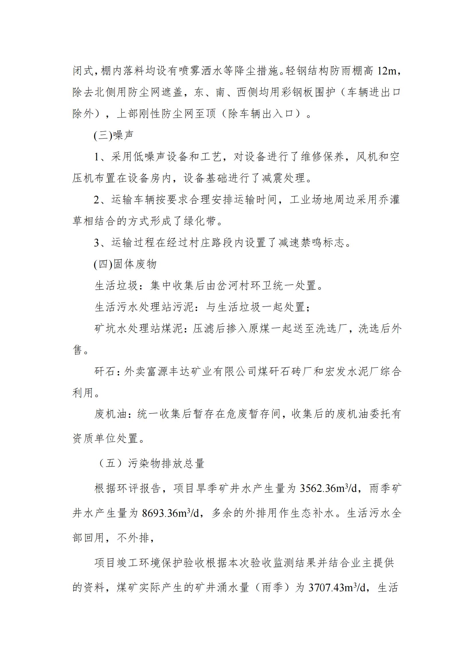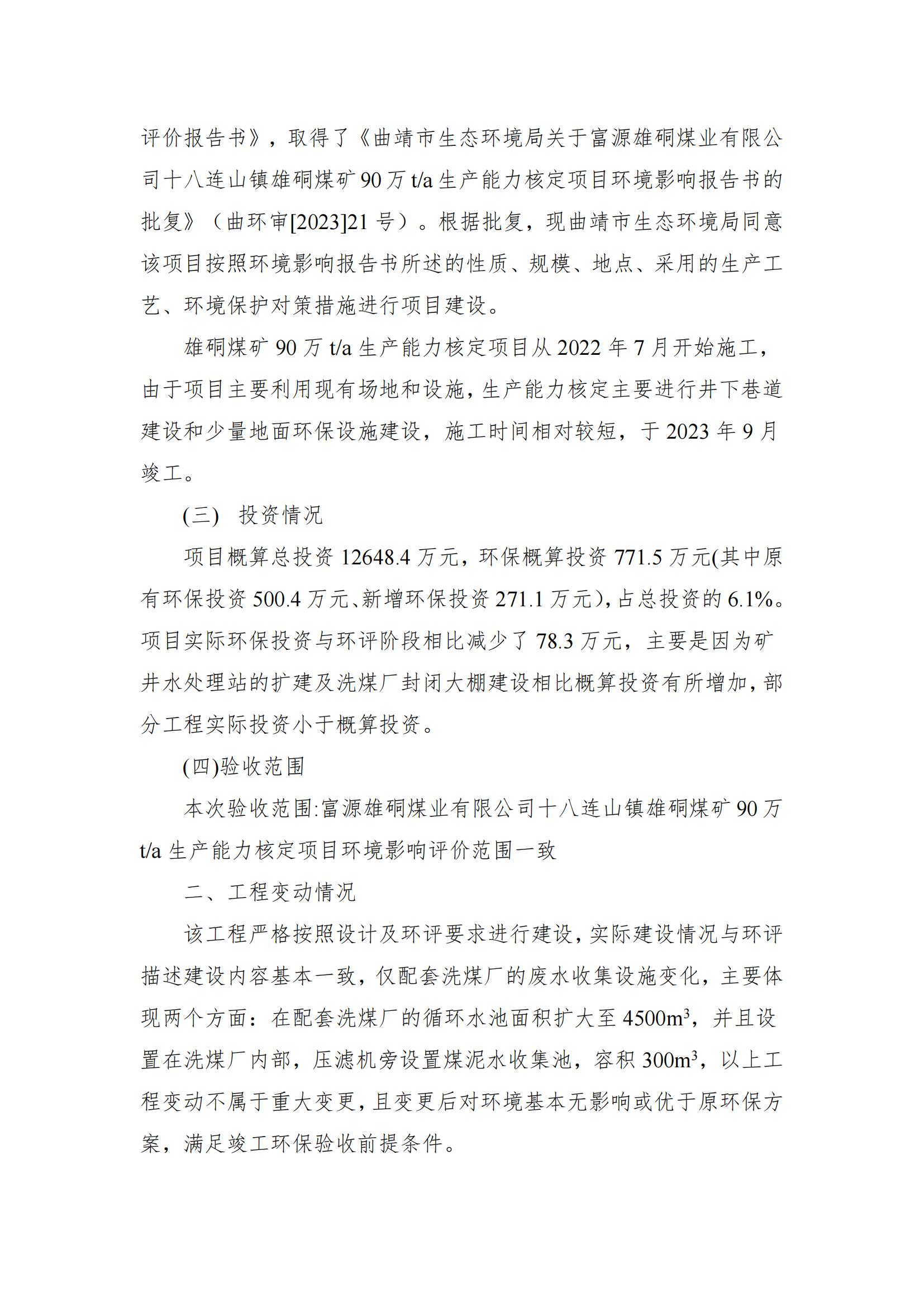 富源雄硐煤業(yè)有限公司十八連山鎮(zhèn)雄硐煤礦 90 萬 t/a 生產(chǎn)能力核定項目竣工環(huán)保驗收意見